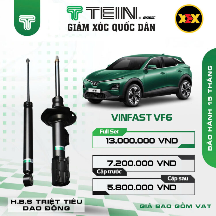 Vinfast VF6 của bạn bị rung lắc, xóc nảy, xệ đuôi do giảm xóc yếu? Đừng lo! TEIN Việt Nam đã chính thức ra mắt giảm xóc Vinfast VF6 – TEIN Basic (có thể thay lẻ cặp trước hoặc cặp sau), giải pháp nâng cấp giúp xe êm ái, ổn định vượt trội!